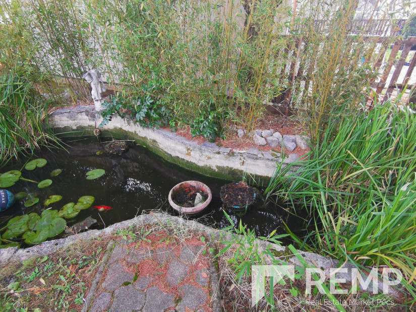 Kis kerti tó dísznövényekkel és aranyhalakkal, amely különleges hangulatot varázsol