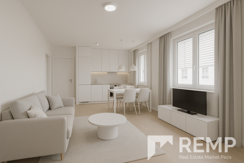 54 m²-es, modern új építésű lakás gardróbbal és amerikai konyhás nappalival – prémium felszereltséggel