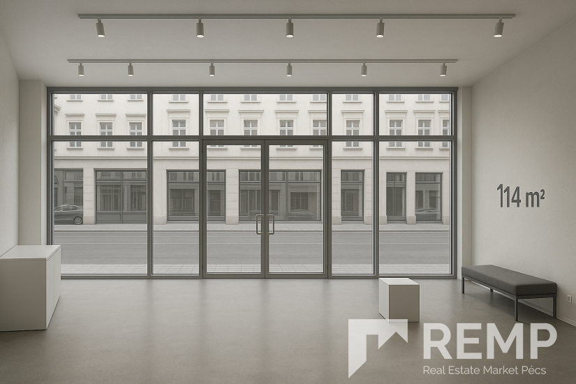 114 m²-es, nagy belvárosi üzlethelyiség eladó – teljes üvegportál, hőszivattyús fűtés, prémium üvegezés