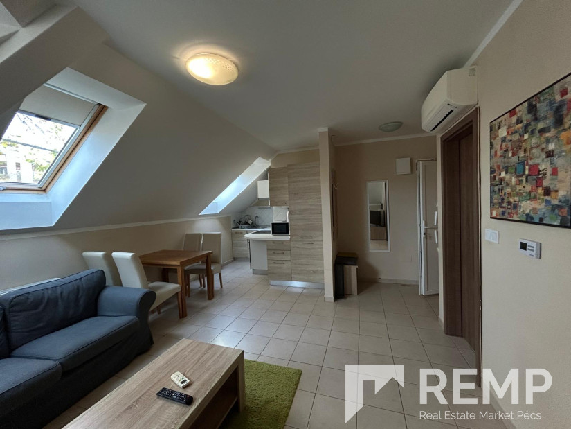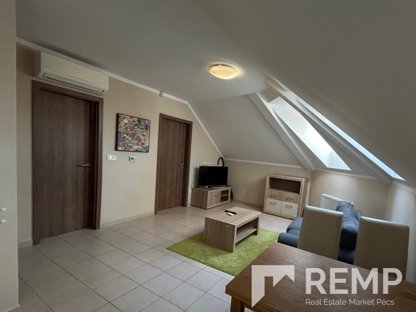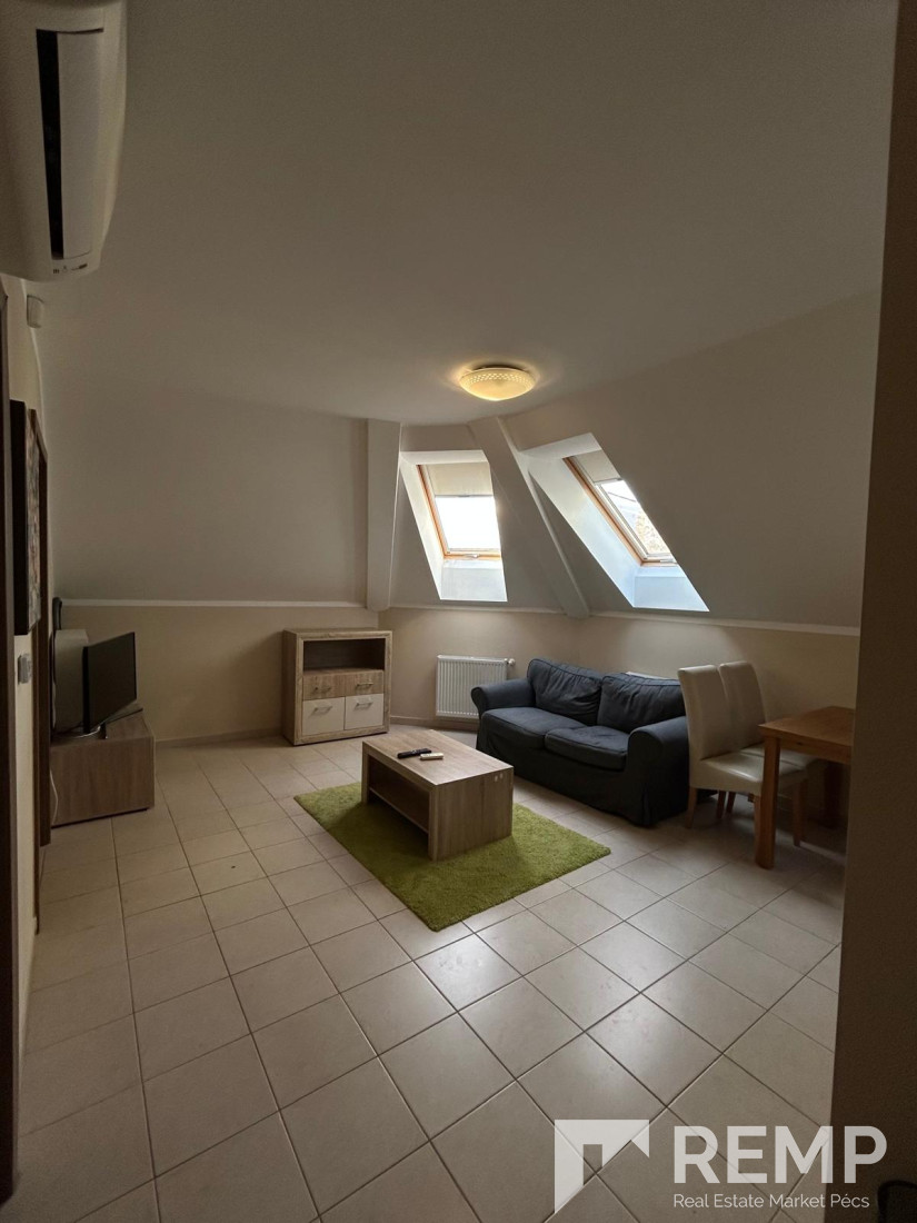 Pécs Egyetemvárosban, a Huszár utcában kiadó ez a világos, tetőtéri