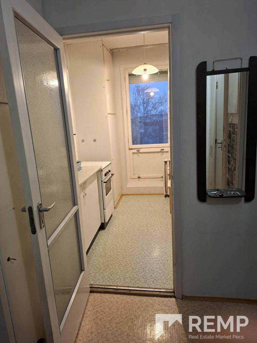 Pécs egyik legkedveltebb városrészében, Kertvárosban eladóvá vált egy 40 m²-es, 1,5 szobás, felújítandó lakás egy szigetelt, panelprogramban részt vett társasház 6. emeletén.