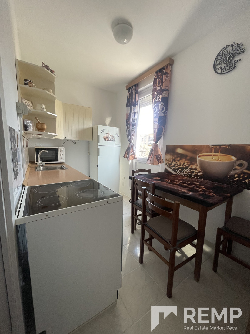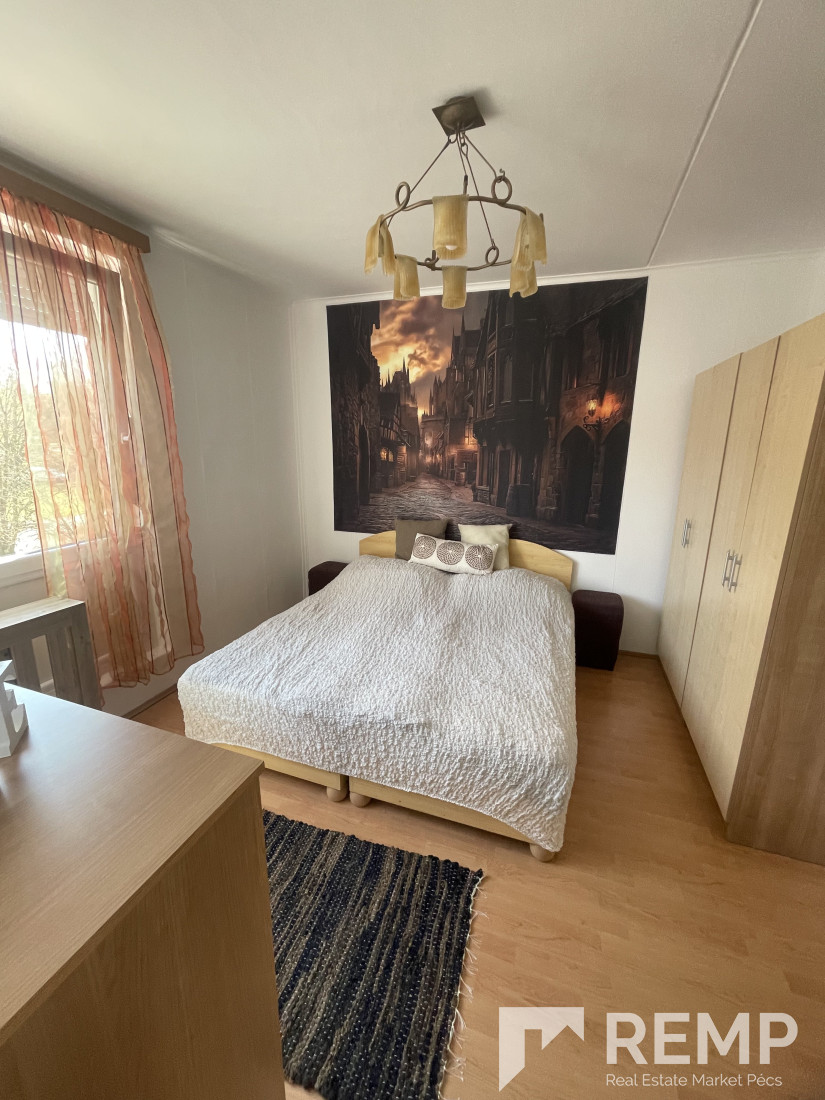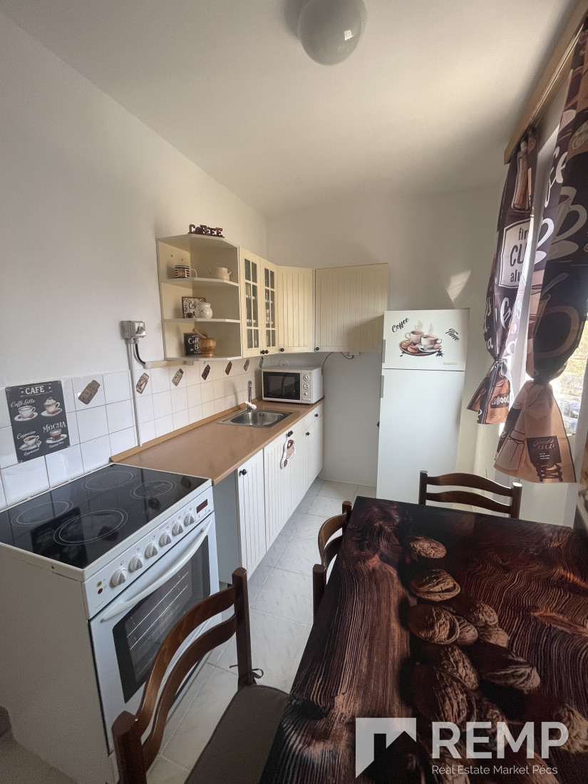 Pécs kertvárosában, csendes, zöldövezeti környezetben kiadó egy 52 m²-es, második emeleti lakás, egy négyemeletes panelházban.