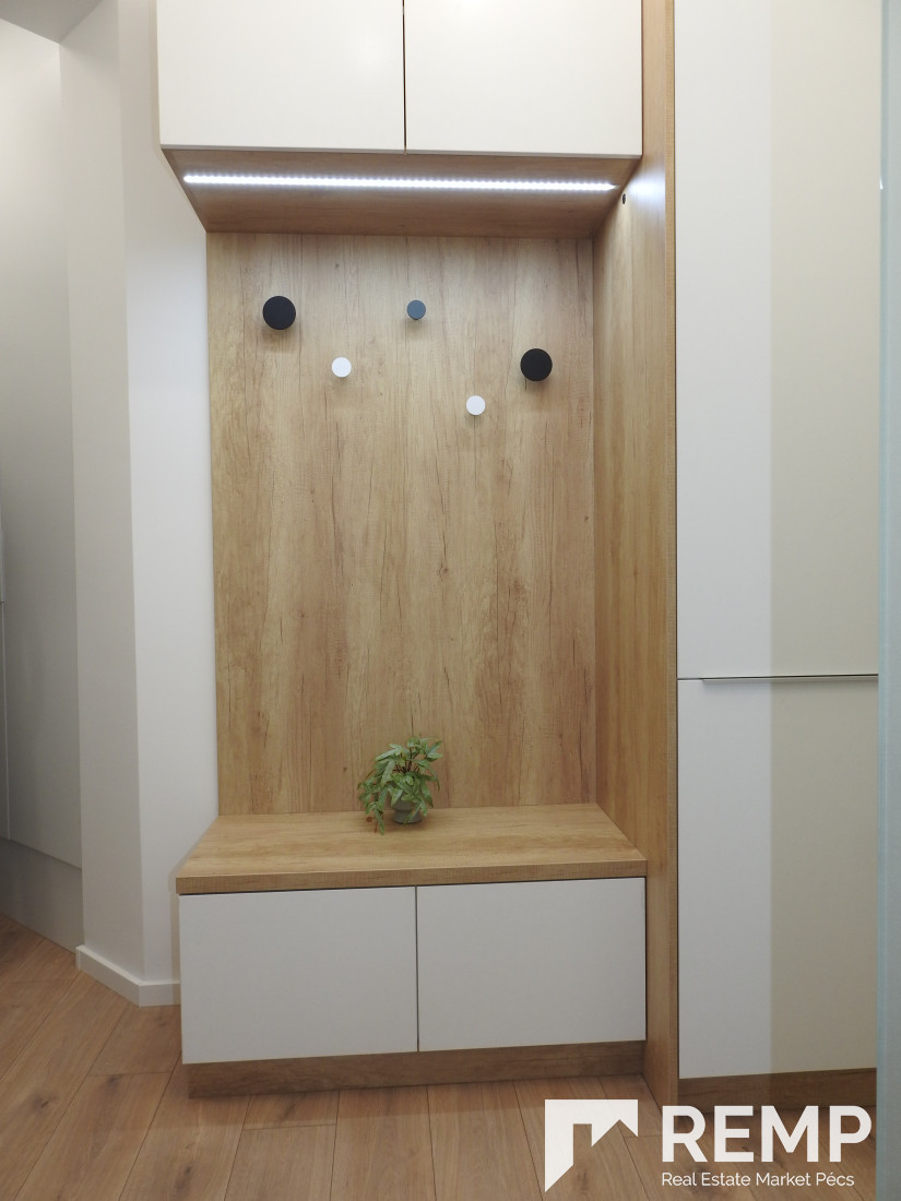 A teljesen felszerelt konyha és a beépített szekrények praktikus helykihasználást biztosítanak. A lakás fűtéséről és hűtéséről klíma, illetve Nobo panel gondoskodik, így a rezsiköltség rendkívül kedvező.