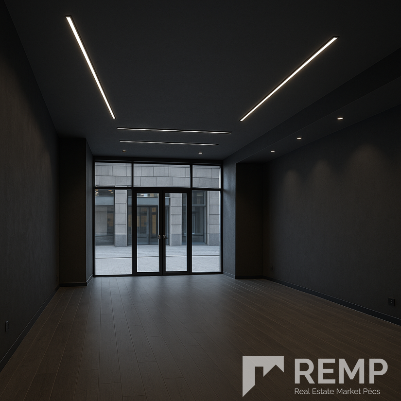 44 m²-es, belvárosi üzlethelyiség eladó – teljes üvegportállal és modern gépészettel