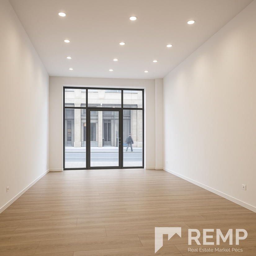 36 m²-es, belvárosi, nagyforgalmú üzlethelyiség eladó – modern kialakítással és teljes üvegportállal