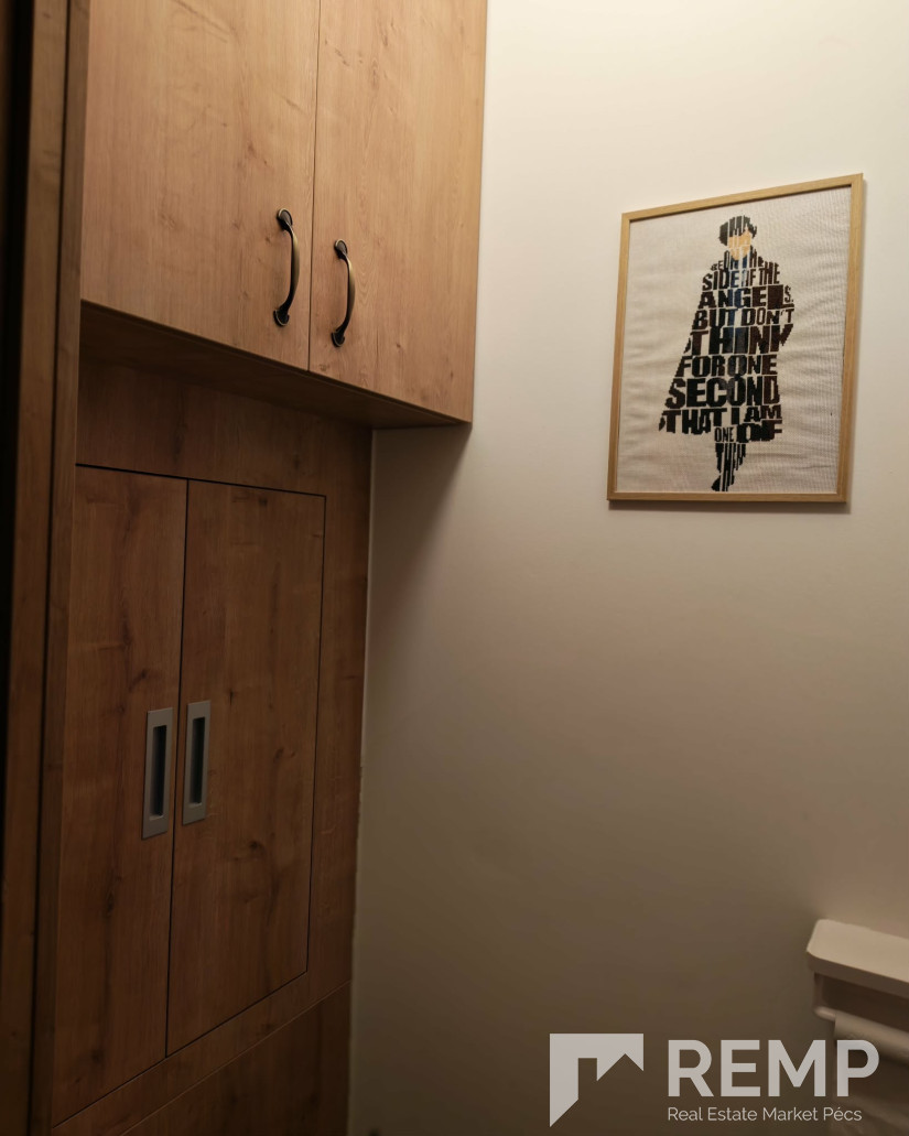 Praktikus elosztás, külön nyíló szobák, modern fürdő, egyedi gépesített konyha, klíma, redőnyos- szúnyoghálós ablakok, biztonsági ajtó.