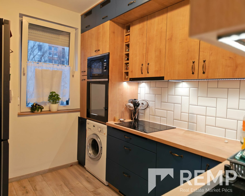 Pécs, egyik közkedvelt részén, a Németh László utcában, eladó 57 nm-es, 3. emeleti 2.5 szobás panel lakás, teljeskörűen felújított kiváló minőségben.