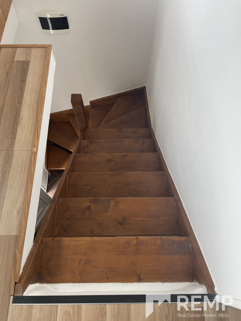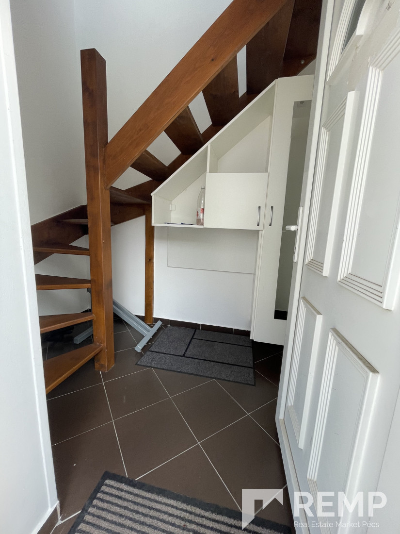Az udvar szinten lévő bejáratból az előszobába jutunk (bútor és bringa tárolásra kialakított), ahonnan belső lépcső vezet az emeleti nappaliba.