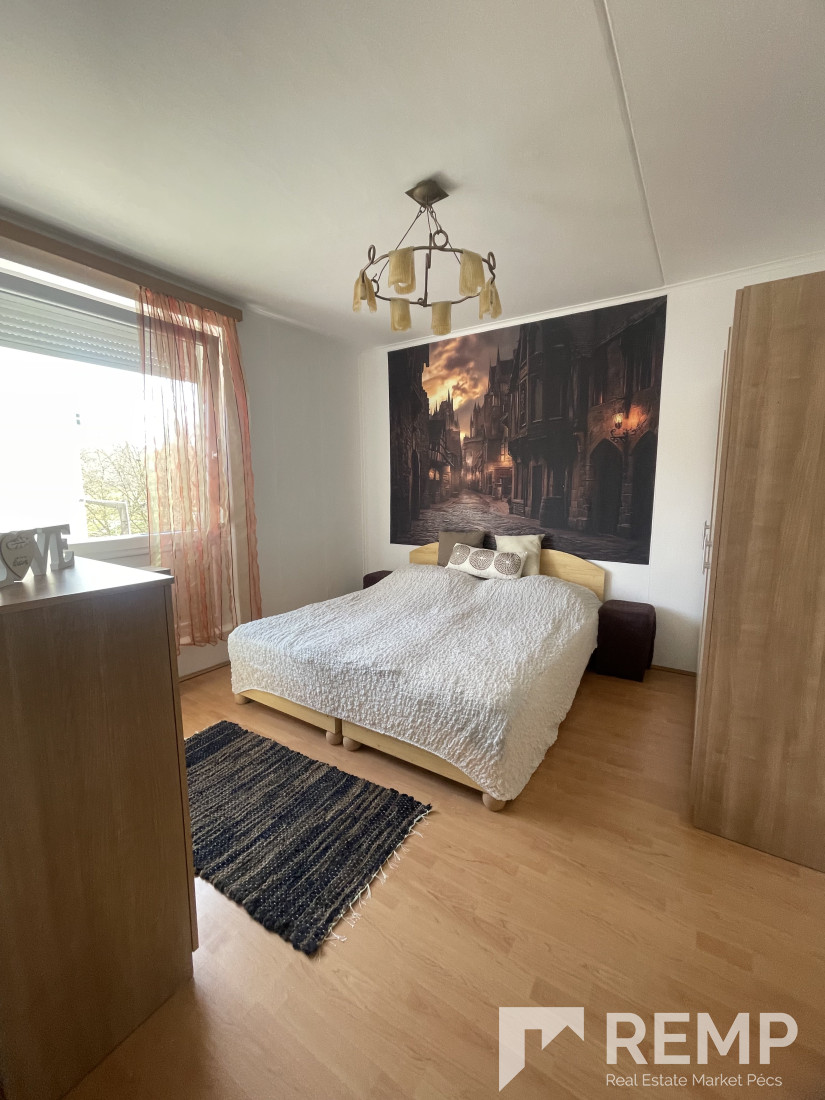 Pécs kertvárosában, csendes, zöldövezeti környezetben kiadó egy 52 m²-es, második emeleti lakás, egy négyemeletes panelházban.